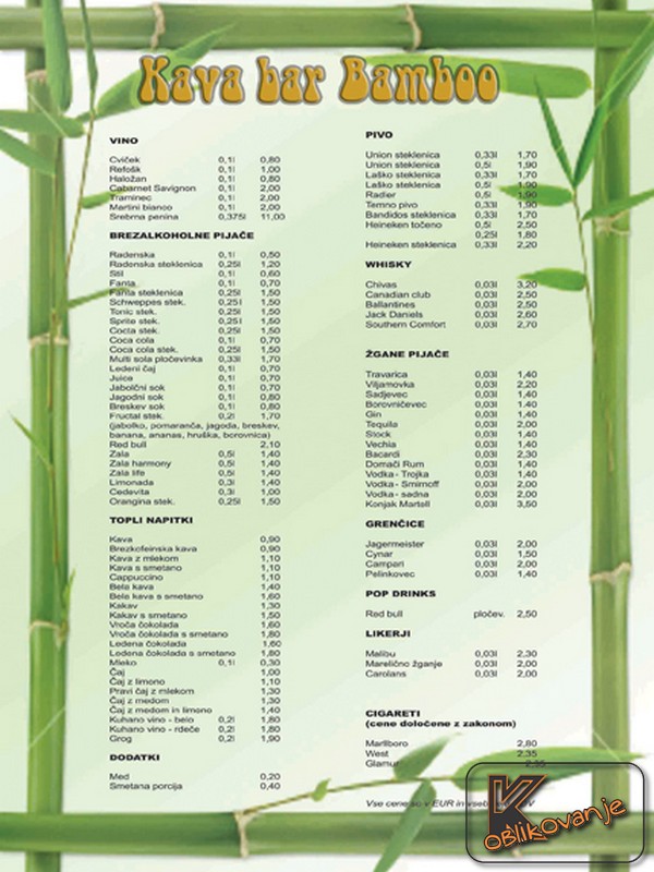 Namizni cenik - bamboo